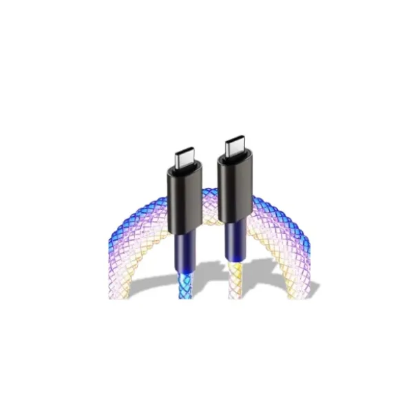 Este cable Óptico RGB mallado Tipo C es ideal para quienes buscan una carga rápida y un toque de estilo. Ofrece una experiencia visual atractiva con su luz externa que varía gradualmente entre 7 colores diferentes. El brillo suave lo hace perfecto para usar como luz ambiental en automóviles sin ser deslumbrante. Con una potencia de 66W y 1 metro de longitud, garantiza una carga eficiente y rápida con durabilidad óptima gracias a su diseño mallado.