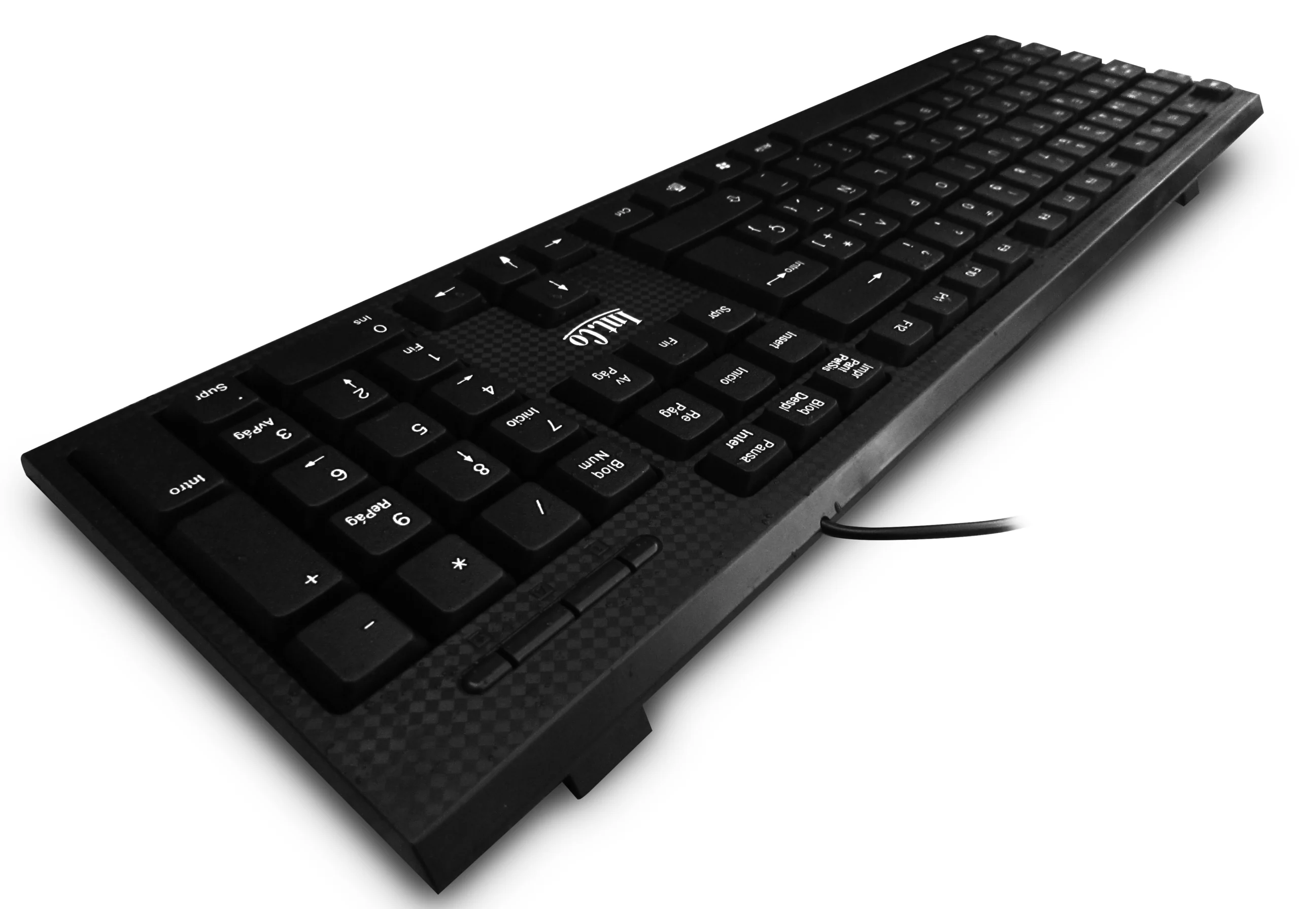 Teclado USB profesional con 104 teclas y textura destacada. Fabricado en plástico ABS resistente, soporta hasta 5 millones de pulsaciones. Ideal para uso intensivo en oficinas o entornos laborales. Compatible con Windows y Mac.